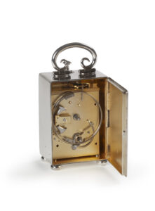Home Carriage clocks MINIATURE CARRIAGE CLOCK WITH QUARTER REPEAT AND TRAVELLING CASE: 5011 Circa 1910 Switzerland 119B mini reis zilver quarter repeater 2503 (5)
